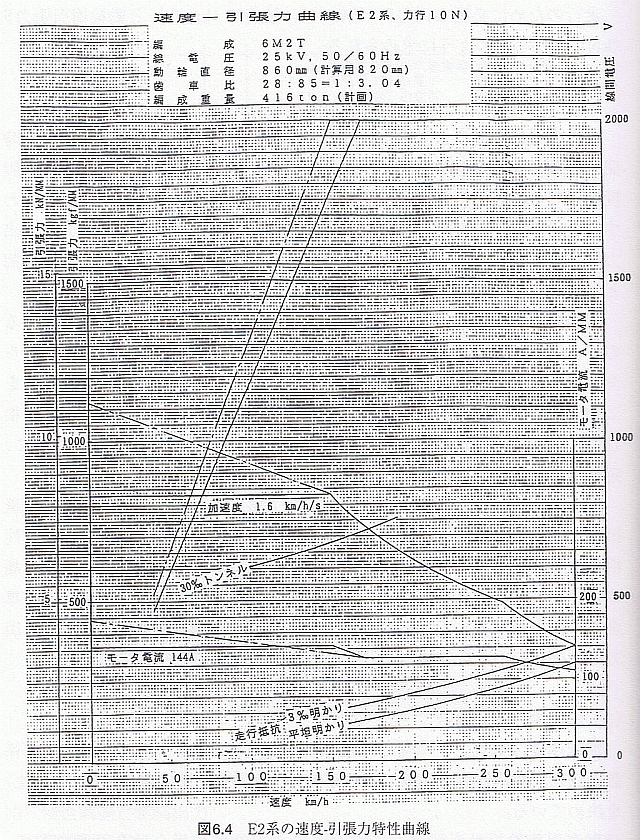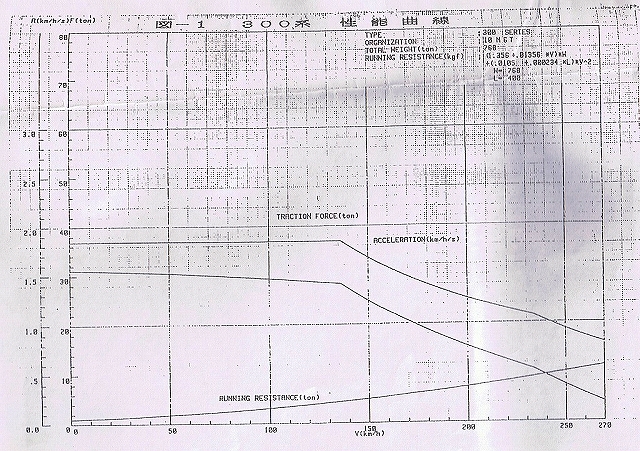 上の画像は300系新幹線の性能曲線。えっかくなのでE2系と比べてみると面白いかと。